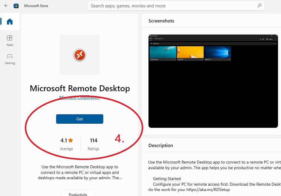 2. พิมพ์ ค้นหา Microsoft Remote Desktop ในช่องค้นหา เพื่อ Download (โหลดฟรี)